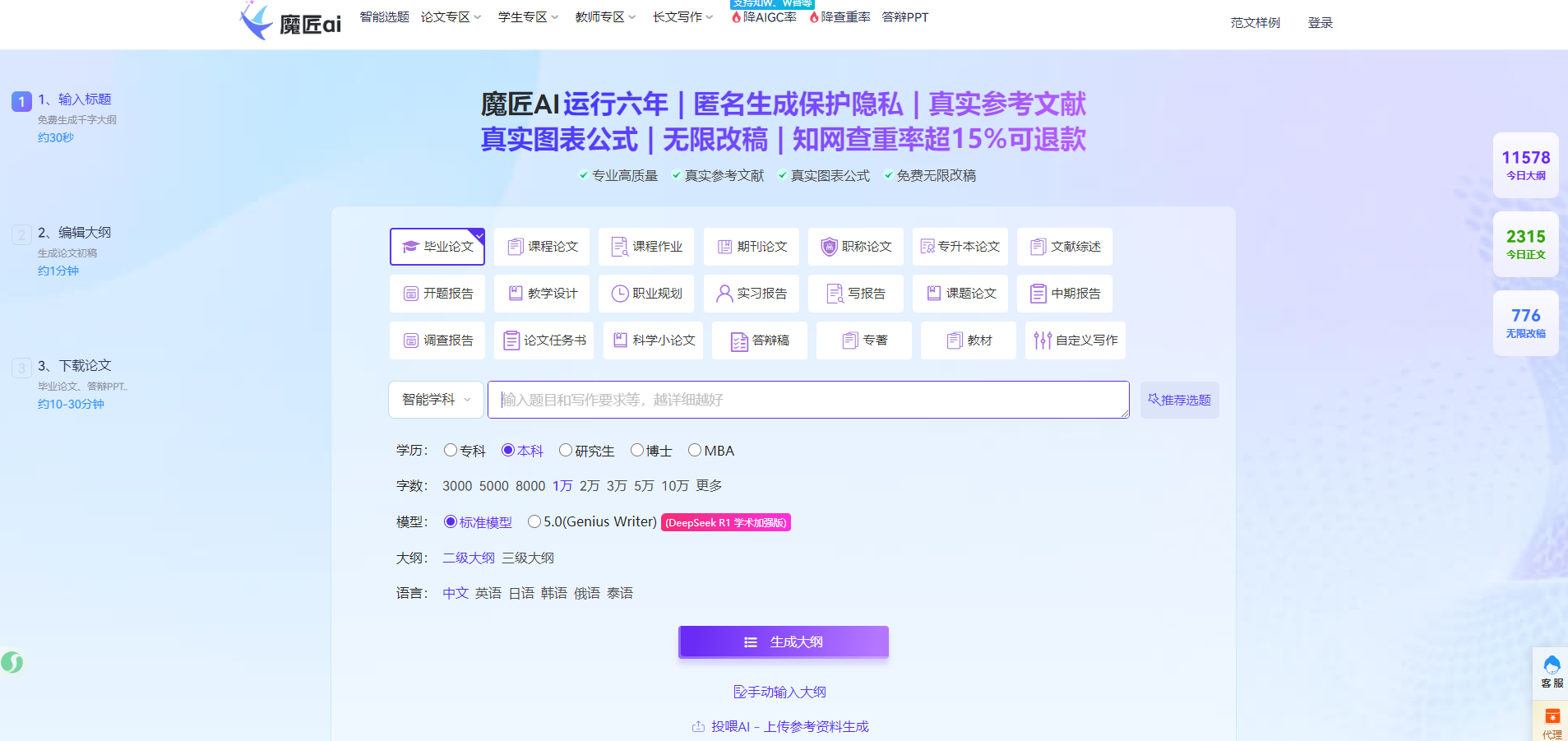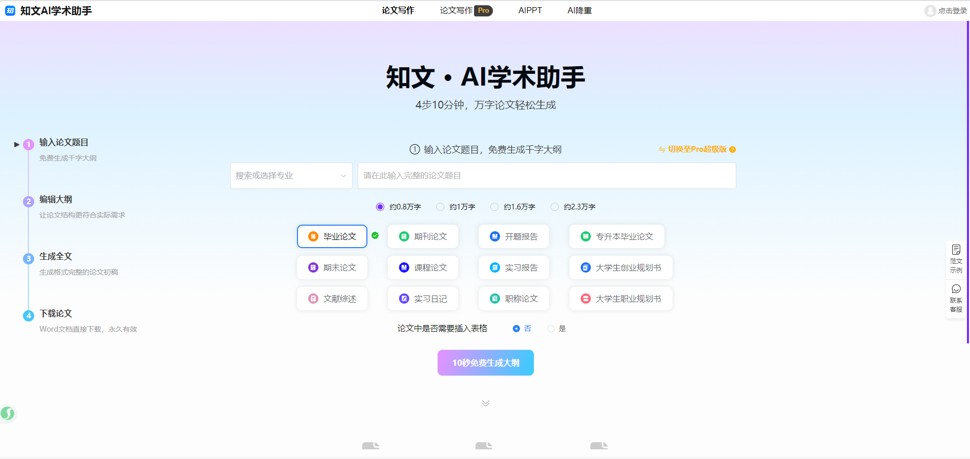 它运用先进的自然语言生成与深度学习技术,3 分钟就能极速生成万字论文,而且最高甚至支持生成 100 万字的论文、专著等长篇学术成果。无论是撰写本科要求的小论文,还是博士阶段需要的大论文,都能轻松应对,为不同学历、不同研究阶段的学者提供有力支持。
