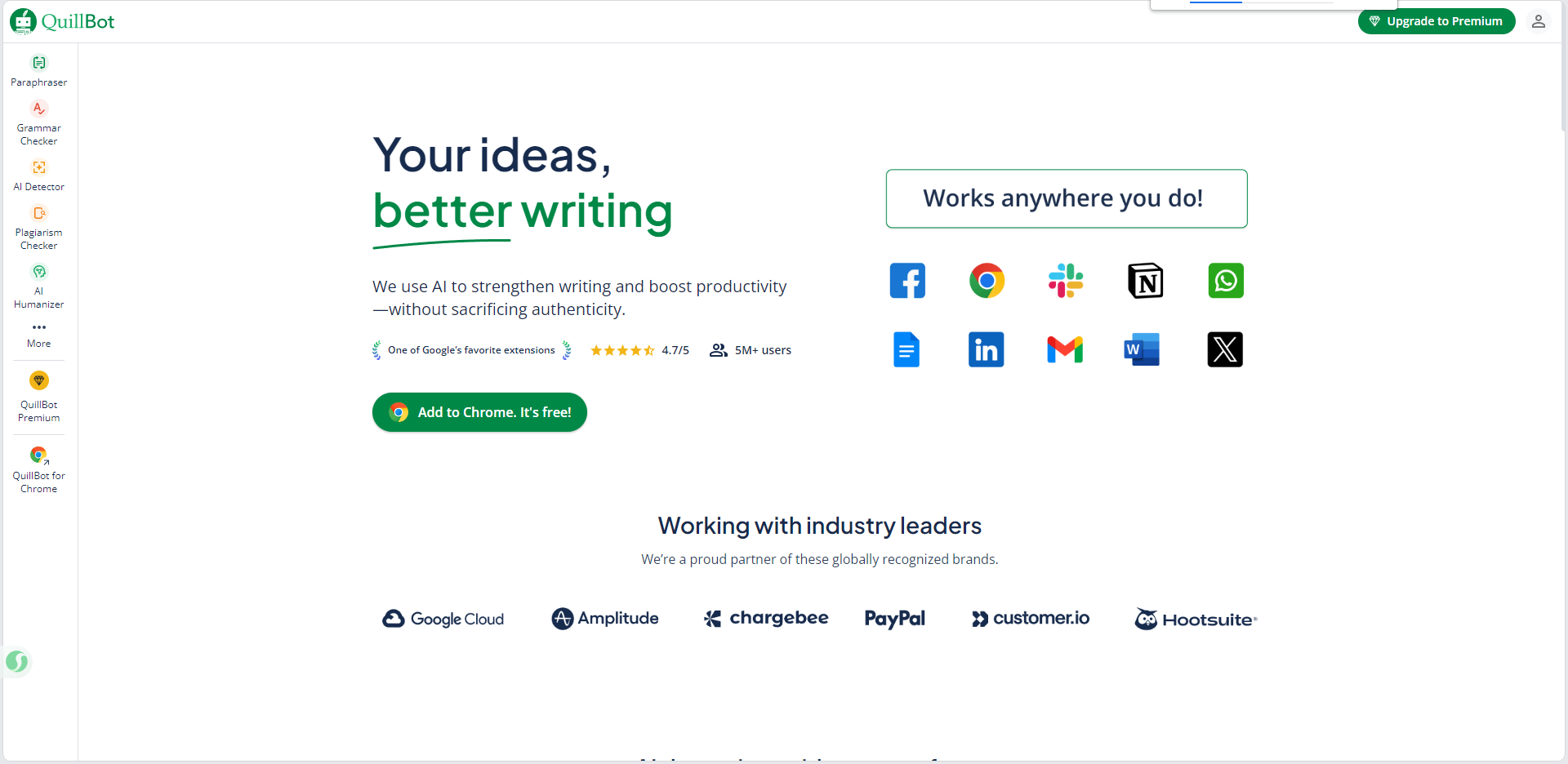 QuillBot 是一款多功能 AI 写作工具,聚焦于内容重写和文本优化,在学术写作场景中实用性很强。在撰写开题报告时,你可以利用 QuillBot 来优化语言表达,它能帮助你改写复杂拗口的句子,使其变得更加简洁清晰。