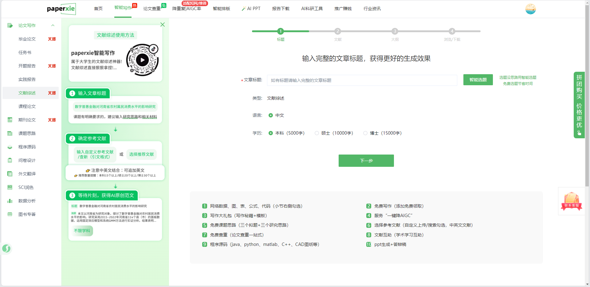 实际操作中,用户需要先提供 “研究主题 + 学历层次”(比如 “本科 - 数字普惠金融对农村消费的影响”),工具才会启动辅助流程:先基于主题匹配该领域的核心文献,再引导用户明确 “综述的逻辑主线”(比如 “从‘数字普惠金融的模式’到‘对农村消费的影响机制’再到‘现有研究的不足’”),后续的内容整合、格式校准,都需要用户先输入自己的文献阅读笔记,工具再做规范与逻辑补全。